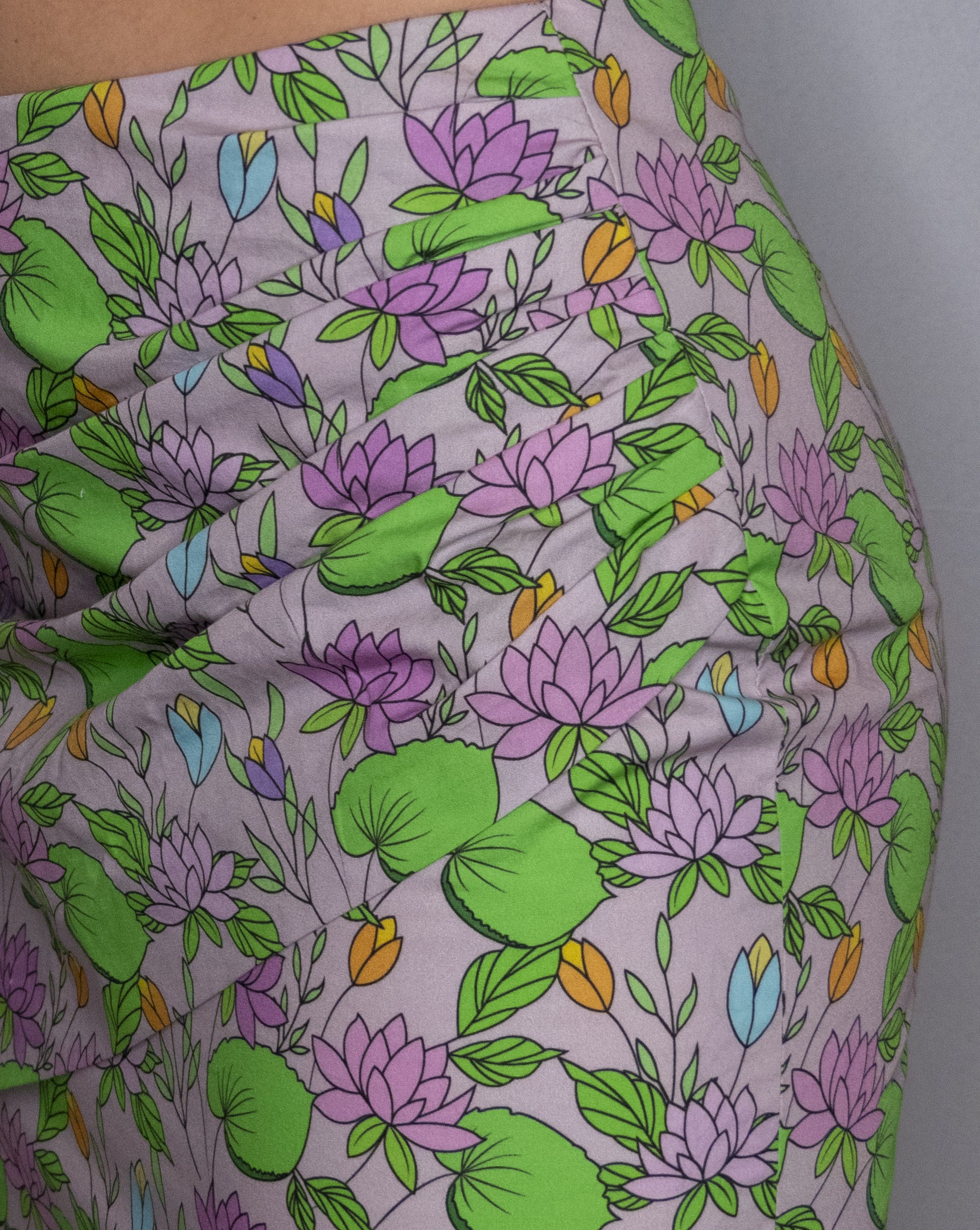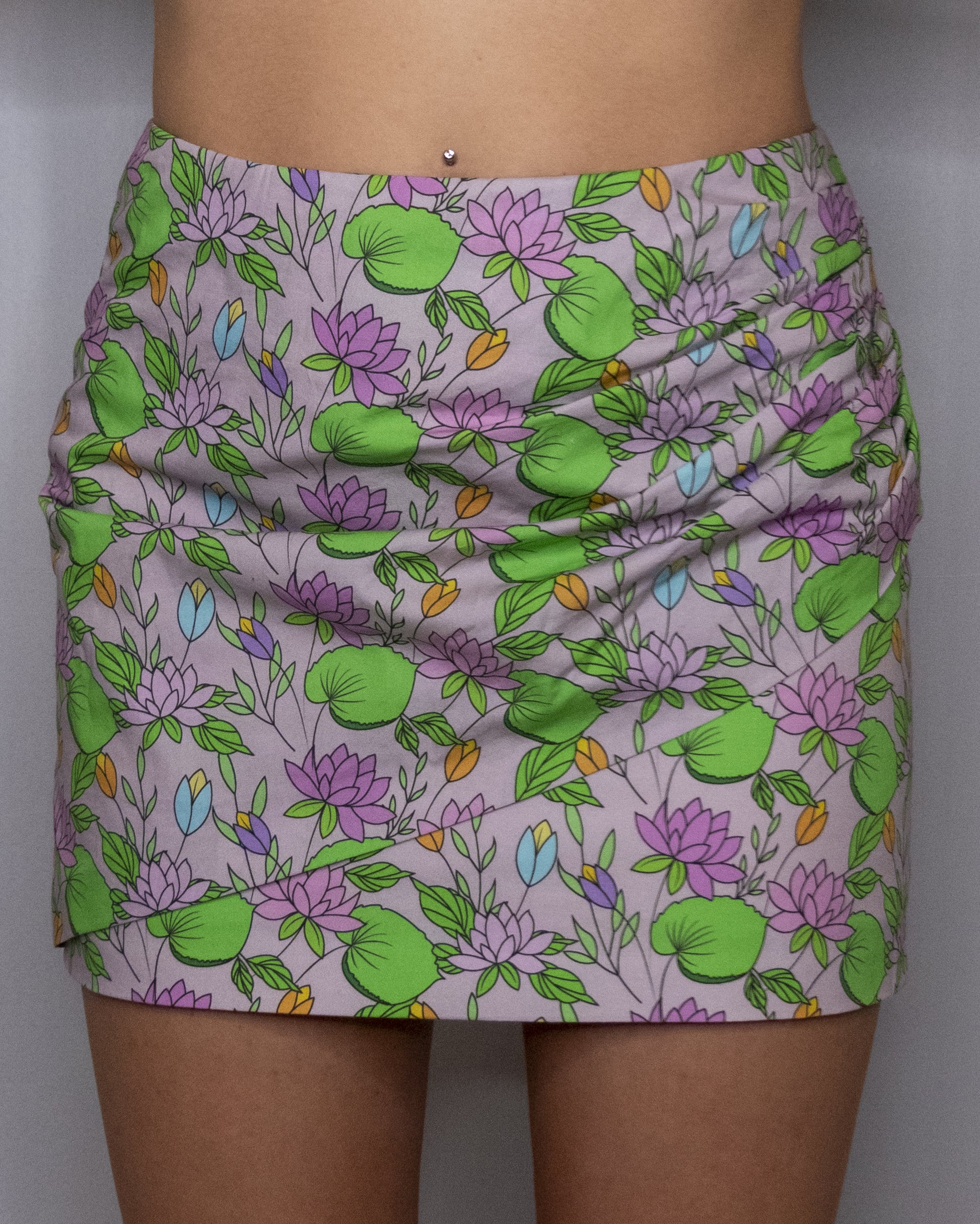 Minigonna dalla silhouette a tubino in popeline. Vita media drappeggiata. Zip invisibile sul retro.