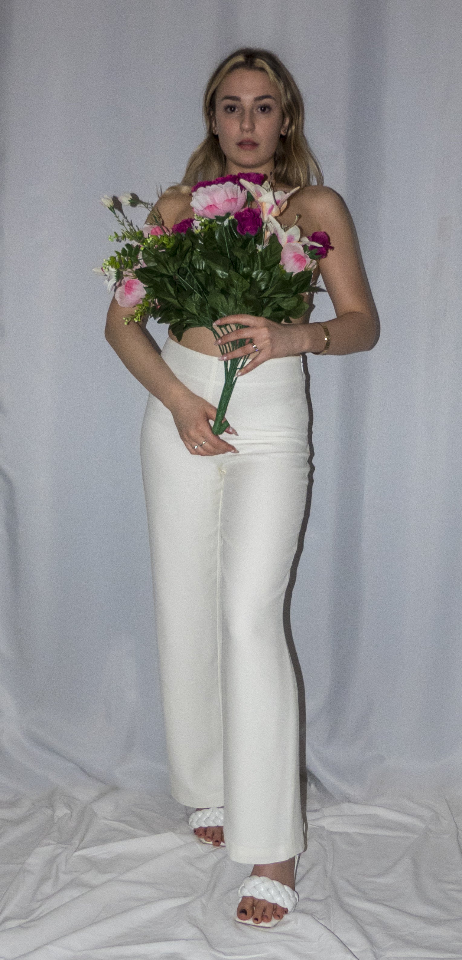 Pantaloni sartoriali a vita alta in morbido cotone. Tessuto fresco e leggero, foderati internamente. Pinces impuntate. Zip invisibile laterale.